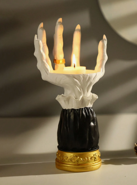 Fright Night Candle Holder: Spooky Halloween Hand Ornament