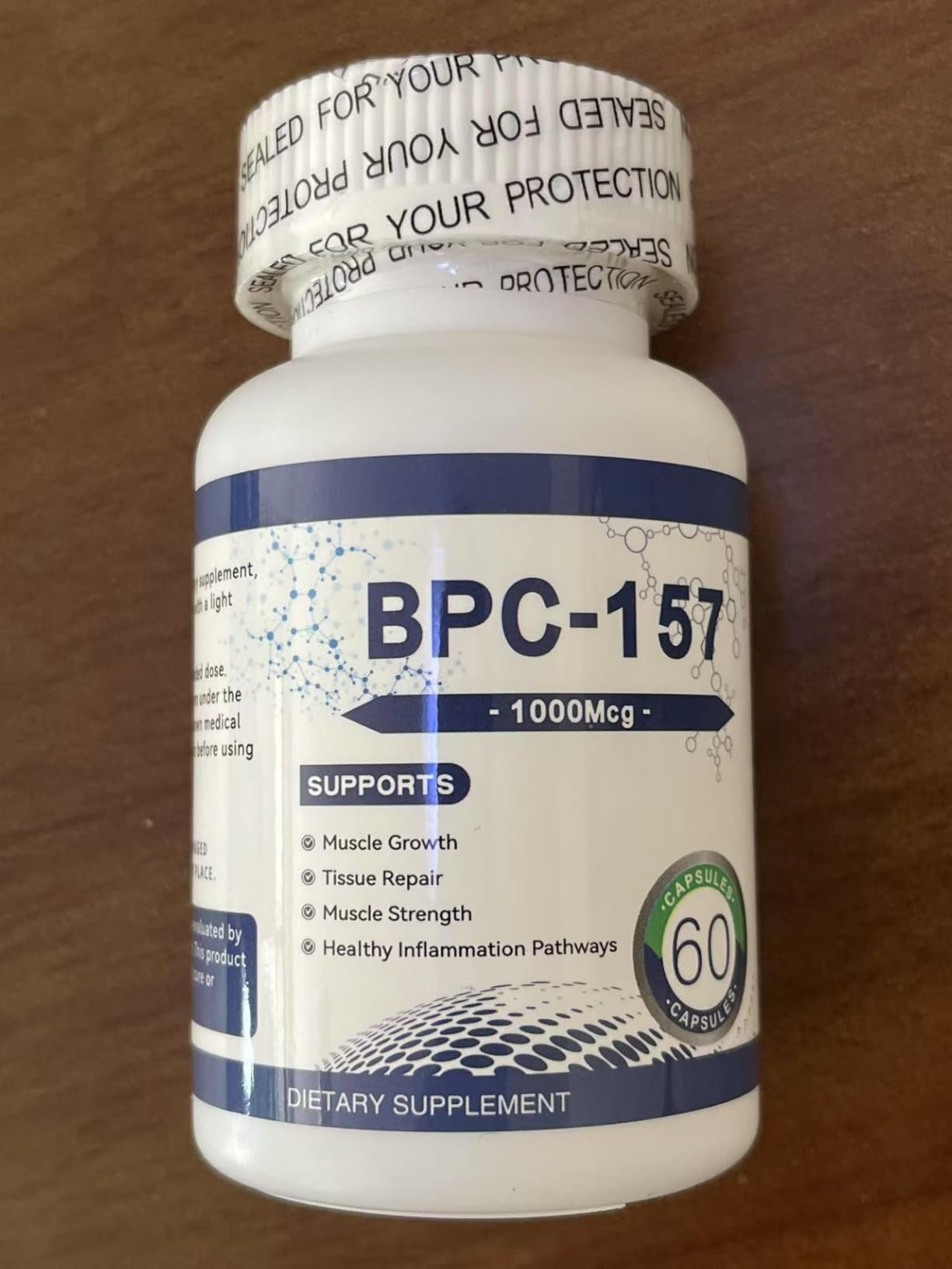 The product comes in an easy-to-take oral capsule format (no injections needed). Each capsule contains 1,000 mcg of BPC-157. The recommended dosage is 1-2 capsules daily.