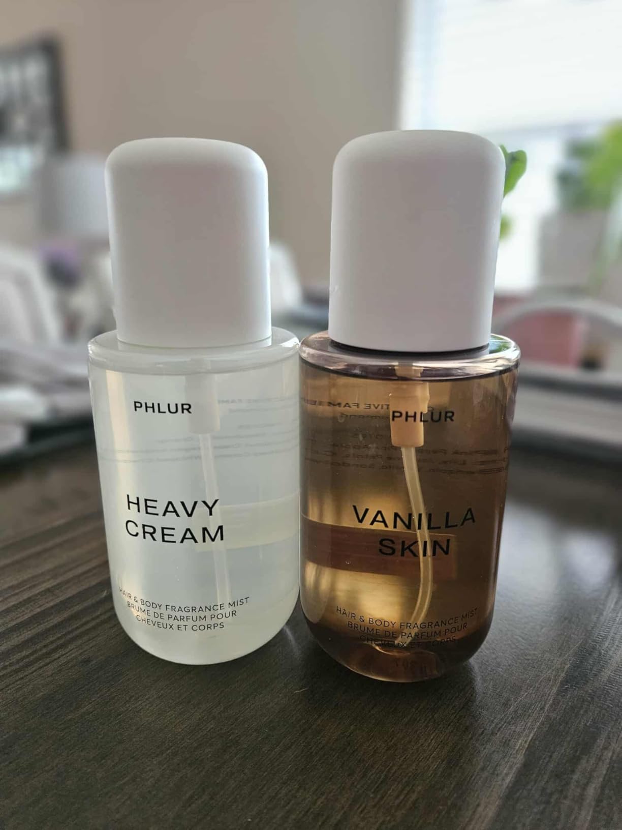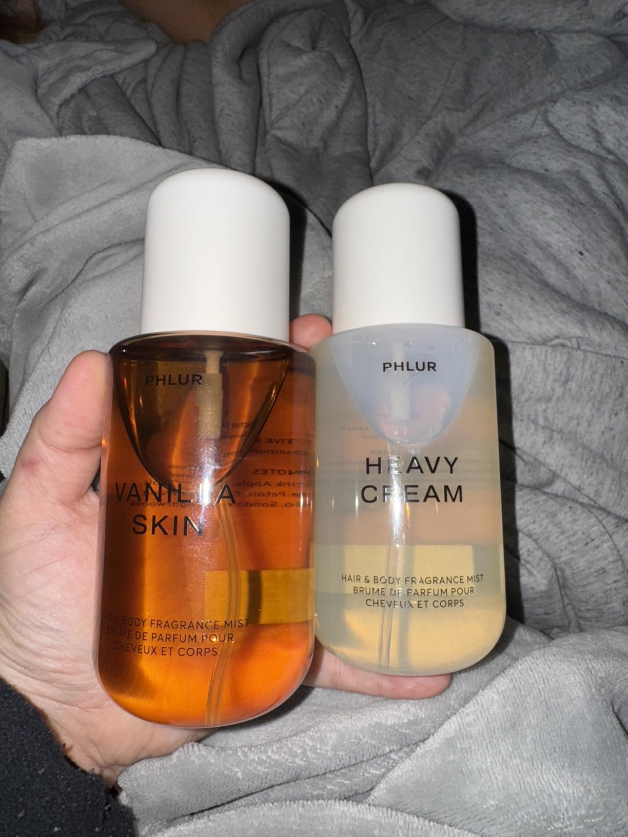 They are designed as body mists, which are typically lighter in concentration and sillage (scent trail) than perfumes or eau de toilettes. "Heavy Cream" is described as "light as air," while "Vanilla Skin" is richer and cozier. Together, they create a balanced, multi-layered scent.