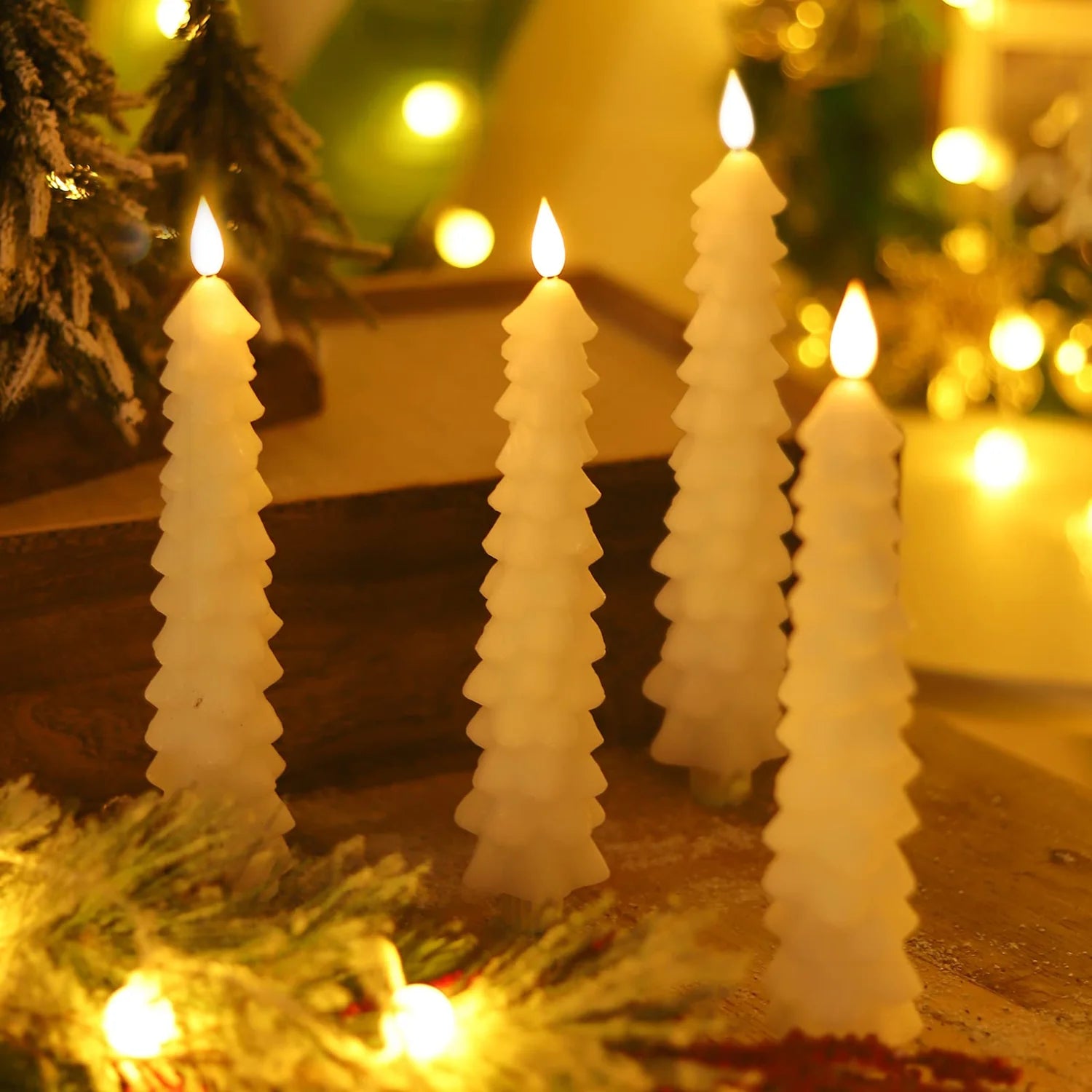 Christmas Tree Design: Real wax made, lifelike leaves, 3D flickering flame, all these Evergreen Christmas Tree taper candles can bring you the classic cozy household atmosphere of quiet comfortable warmth without any drips, smoke, or flames, perfect for winter holidays and Christmas decor.
